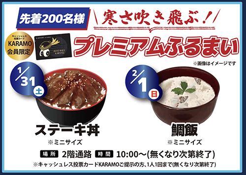 キャッシュレス投票カードKARAMOの提示で、1人1回まで振る舞い。(無くなり次第終了)