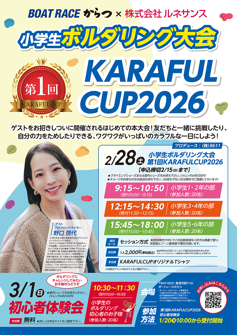 プロフリークライマーの野口啓代さんをお招きして、小学生ボルダリング大会「第1回KARAFULCUP2026」を開催!