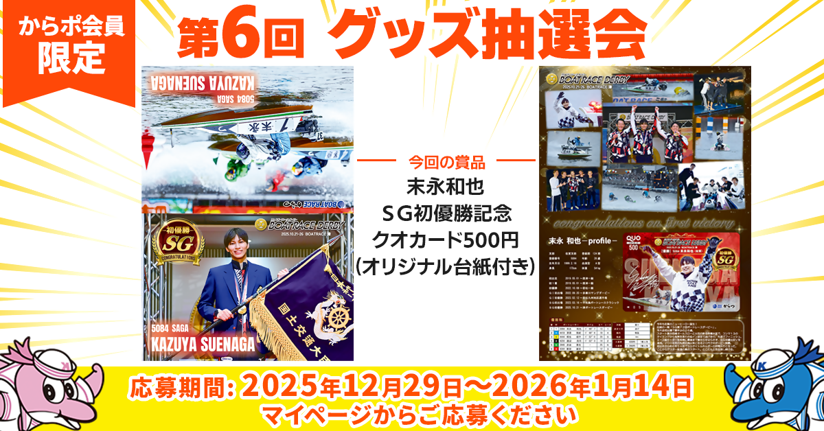 末永和也SG初優勝記念クオカード500円(オリジナル台紙付き)を計50名様へ☆
