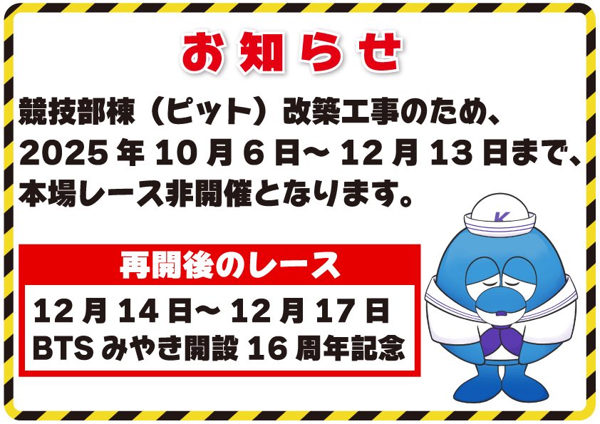 次節は12月14日から「BTSみやき開設16周年記念」を開催予定です。